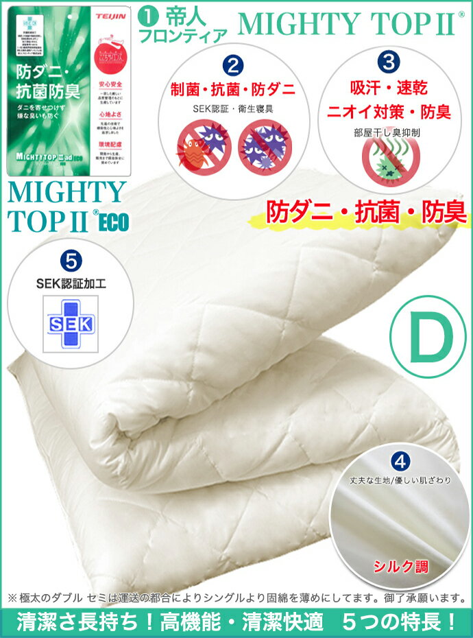 【12点セット】: ・掛布団ダブル:190×200cm ・敷布団ダブル:140x200cm ・枕:43x63cm:【2個】 ・掛カバー:D ・敷カバー:D ・枕カバー:43x63cm出し入れ簡単ファスナー式【5枚】 ・敷パッドダブル:140x205cm(ベット・ベットマット兼用) 【SEK認証】 防ダニ・制菌・抗菌・防臭・部屋干し臭抑制 速乾・吸汗・清潔・衛生寝具 【低ホルマリン基準クリア】当社の製品は薬剤等を使用しておりますが、身体に害になるような加工は一切しておりません。